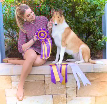 I always believed in Genna, even before she was born. I tried to tell myself I didn’t need to keep a puppy from that litter, but she just kept checking off all the boxes for me, and she continues to do this in spades as she matures beautifully . Something about the unicorn head on the back of her neck told me she was going to be extra special, and that was no lie. Genna has truly been the collie that I got into the breed for, she is incredibly smart, athletic, loyal, beautiful, balanced, and sound. She is my companion and my vision incarnate for what I hope to produce in my lines. This past weekend in six shows in four days, she showed me it wasn’t just me blindly admiring her. Genna went BOV all six shows. She went over specials from the classes for the first three shows to finish her championship under respected breeder judge Meredith Hector, garnering our first best of variety at a specialty, a first for me after nearly 10 years in Collies. As a move up the following day, Genna checked off even more off my breeder bucket list items, garnering our very first best of breed at a specialty show under respected breeder, Judge Hector Hector, and our very first real group placement under herding authority Mary Murphy East. Genna closed out this clean sweep with an owner handled group 3 and an abundance of wonderful compliments from so many people in the fancy. It was so much fun to watch her truly get the hang of showing this weekend and truly fulfill my vision for what I had hoped for in this breeding. This girl is special to me beyond measure and we are just getting started.