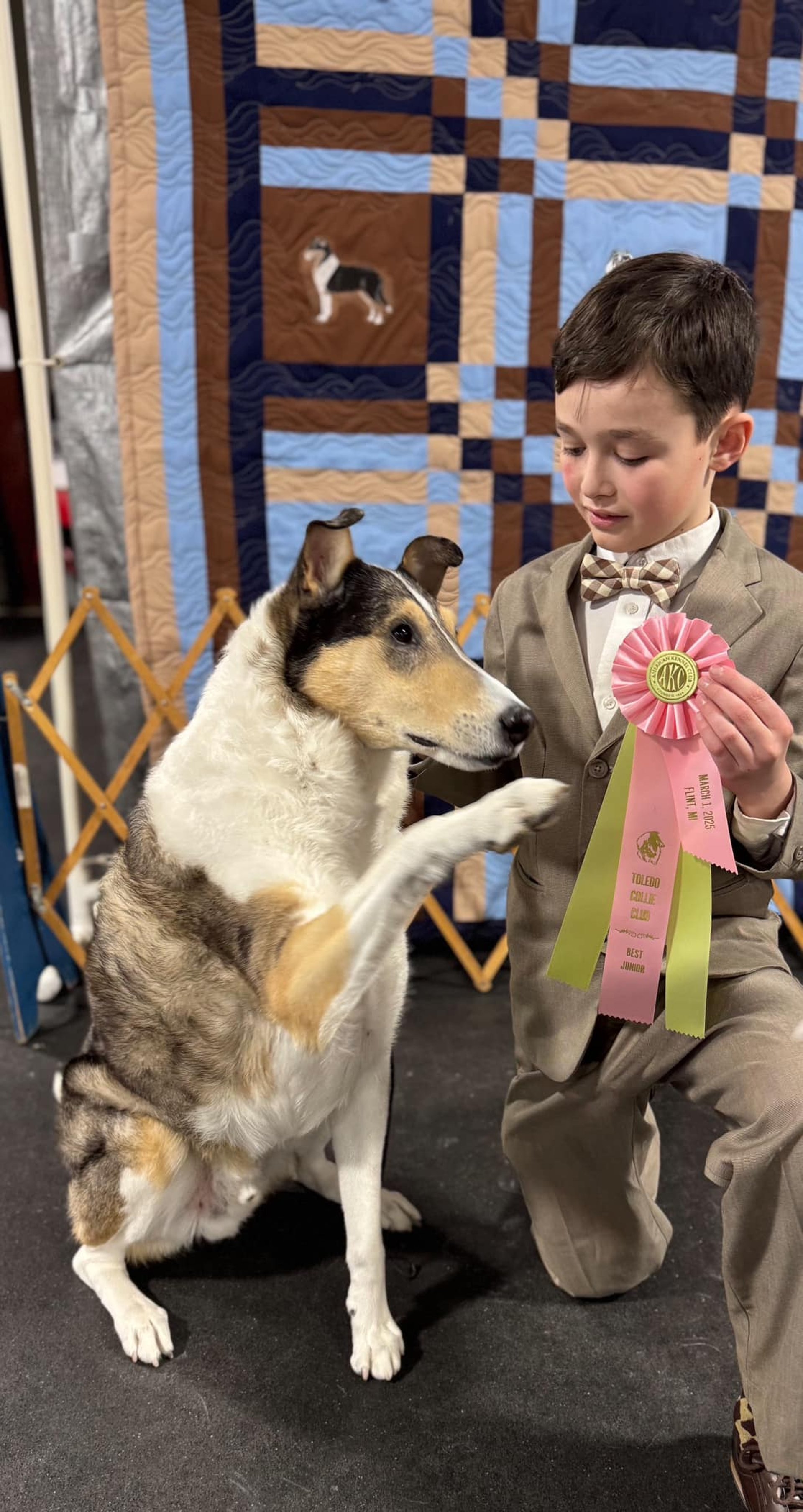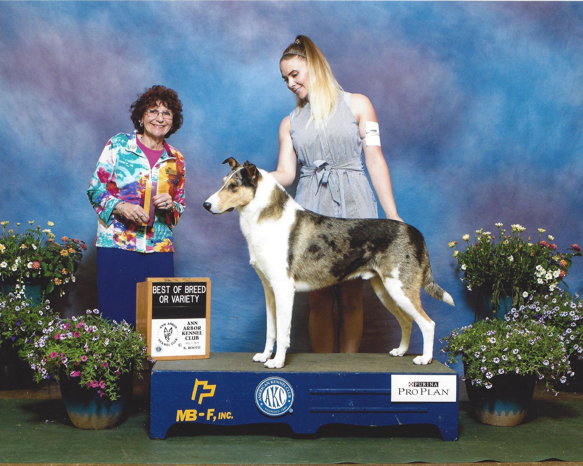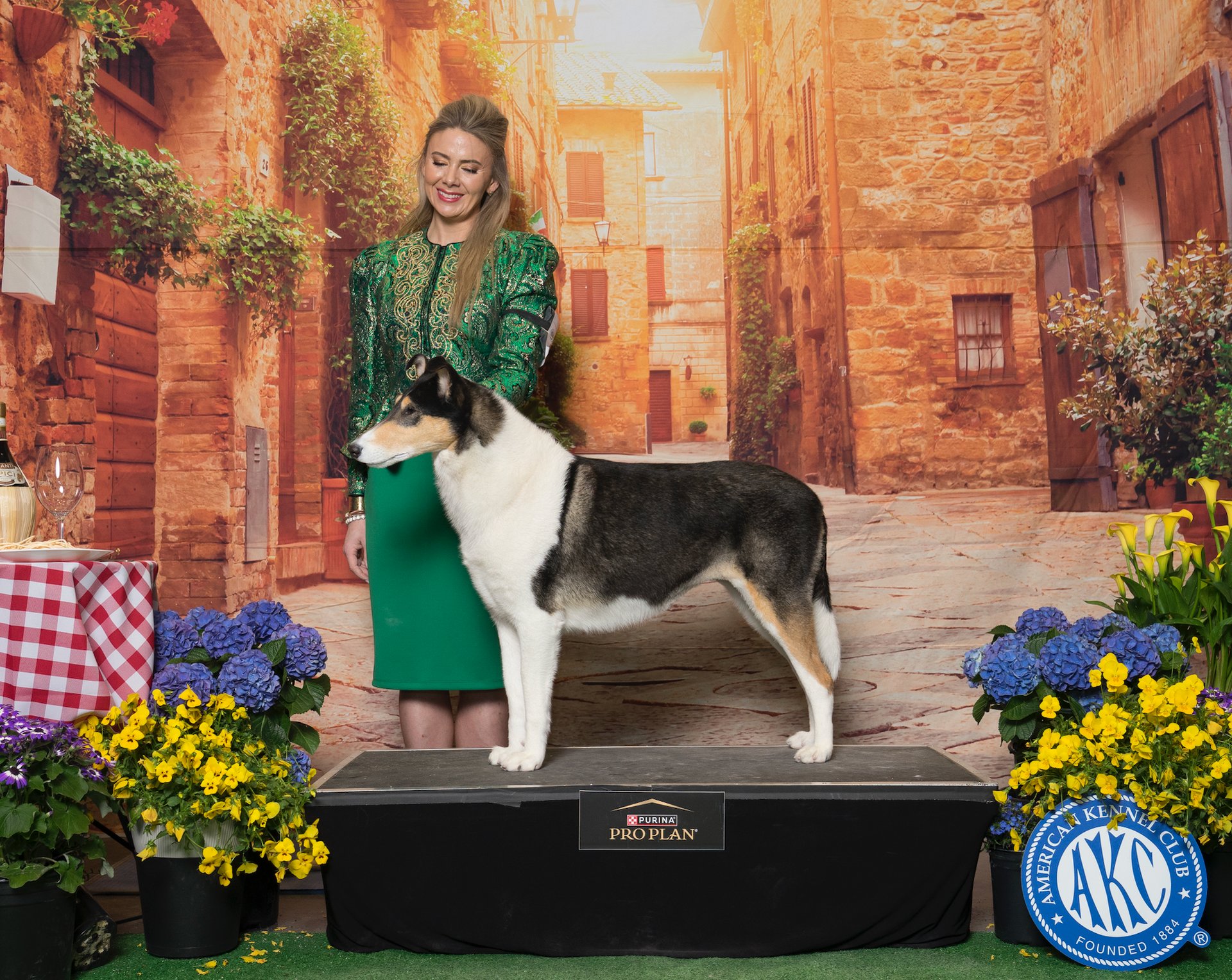 The one who started it all, Kirby! After growing up with Shelties and having a Greyhound when I was in college, I wanted something in between, both temperament and coat wise, I discovered the Smooth Collie, and it escalated quickly. Kirby was an excellent dog to learn on, he taught me so much, he went on to have a wonderful juniors career to teach the next generation. He has so much personality, he is one in a million!