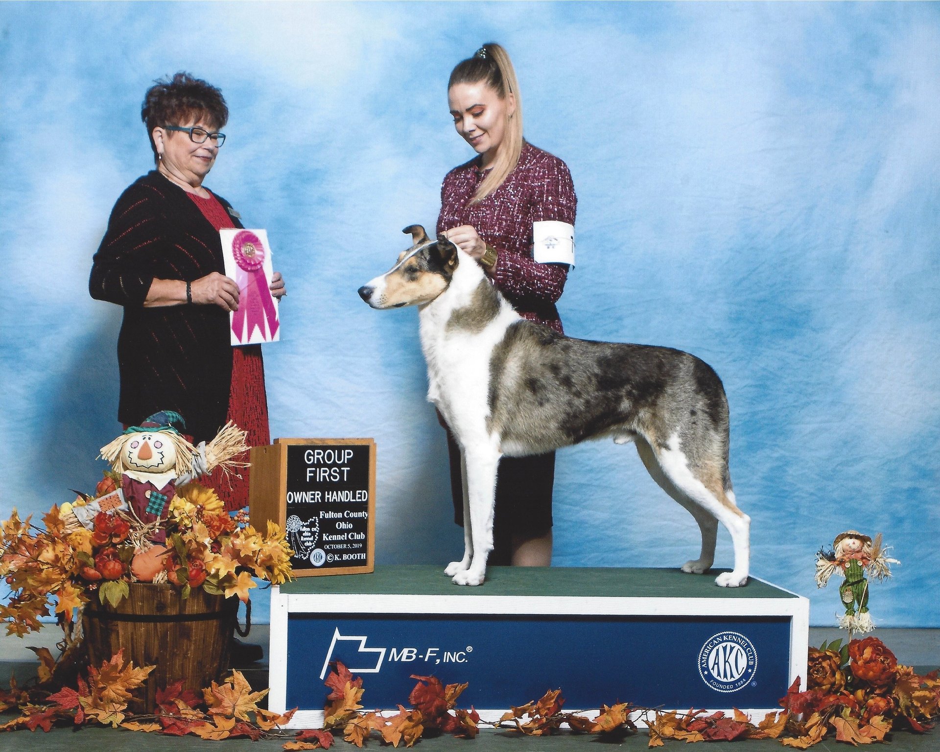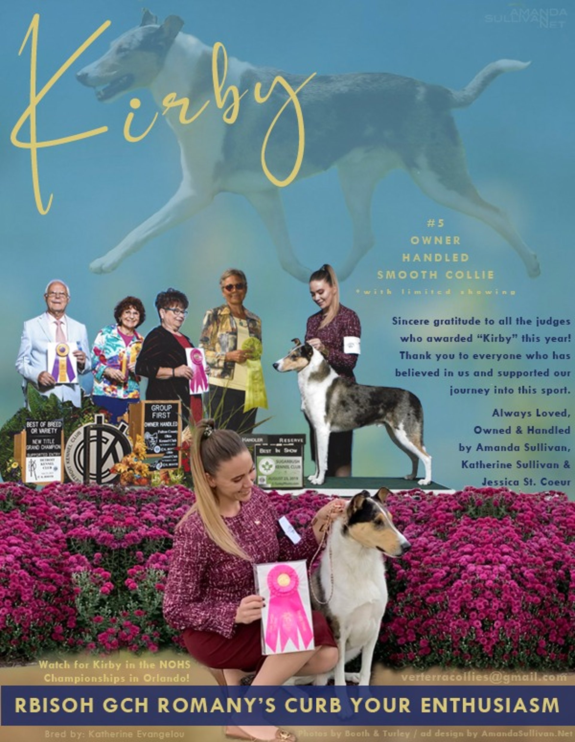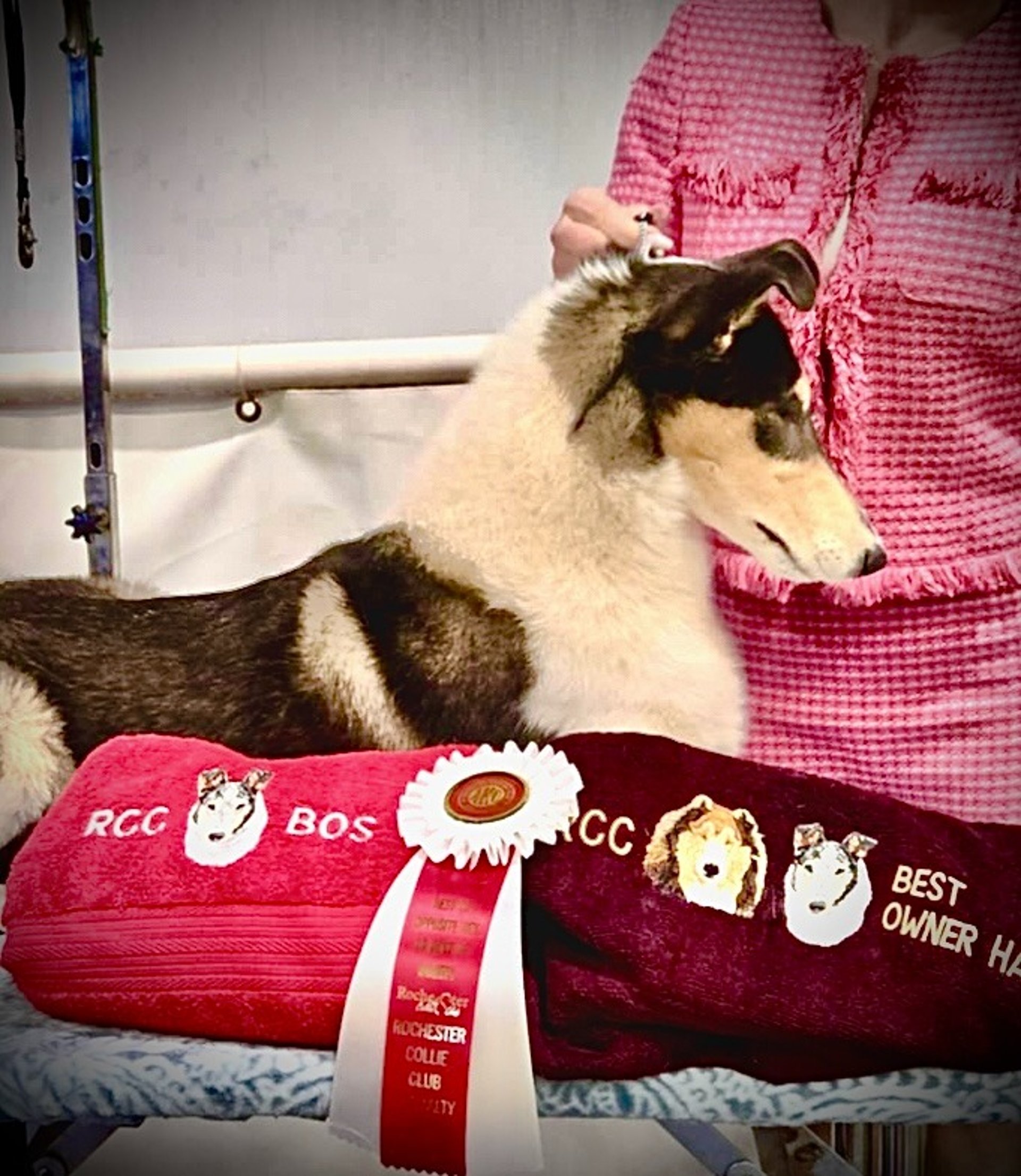 The one who started it all, Kirby! After growing up with Shelties and having a Greyhound when I was in college, I wanted something in between, both temperament and coat wise, I discovered the Smooth Collie, and it escalated quickly. Kirby was an excellent dog to learn on, he taught me so much, he went on to have a wonderful juniors career to teach the next generation. He has so much personality, he is one in a million!